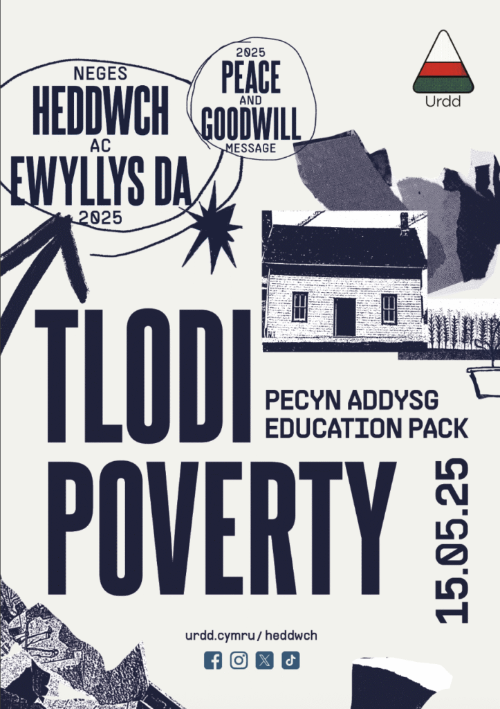 Since 1922, the Urdd has produced a message of Peace and Goodwill conveyed initially through Morse code, then by the BBC World Service, and more recently through digital media, with the aim of uniting children around the world, and supporting them to call for a fairer, more equal and more peaceful world. 2025’s Message theme is Poverty. With the current child poverty crisis visible in Wales and across the world, the Urdd and the young people of Wales have chosen to focus on this crucial issue. With 1 in every 3 children and young people in Wales living in poverty, the Peace Message 2025 clearly states the need for change.