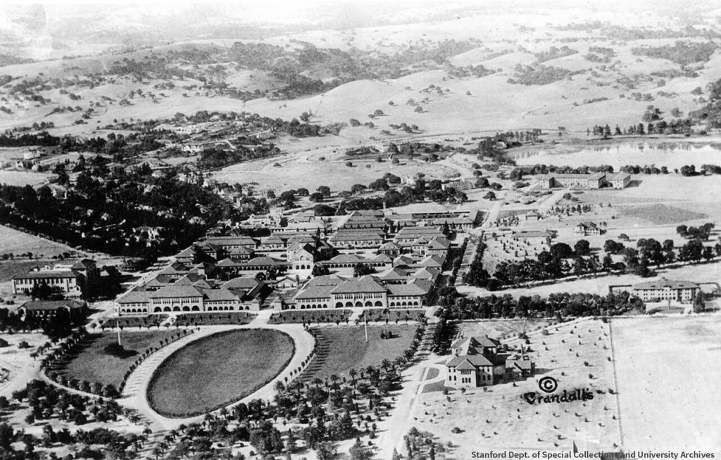 “We drove on to Stanford University which stands in its own grounds of 8000 acres. The buildings are of buff sandstone & they are grouped around open courts or quadrangles and are connected by continuous open arcades of arches & pillars. The no. of students at present is about 2500 – 2000 men and 500 women.“