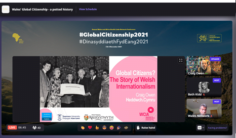 Yn ddiweddarach, archwiliodd Craig Owen, Cynghorydd Treftadaeth Canolfan Materion Rhyngwladol Cymru, undod byd-eang yng Nghymru dros y 100 mlynedd diwethaf, a thynnodd sylw at y berthynas rhwng heddwch ac iechyd. Ysgogodd y rheini oedd yn bresennol i feddwl: “Beth allwn ni ei ddysgu o’n hanes?”
