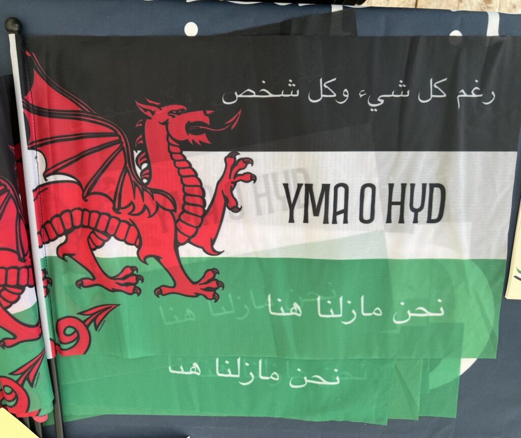 Where can I get a flag saying Yma o hyd, with the Arabic? I’ve seen a couple during pro Palestine marches and really want one, to represent my family, I’m Welsh, my husband is Arab, our children have a rich, mixed heritage.