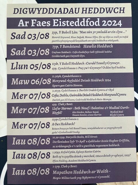 Over the first week of August 2024, WCIA and Academi Heddwch brought debates of world peace to the world of Wales’ National Eisteddfod, hosted by Rhondda Cynon Taff this year in venues around Pontypridd (with a ‘maes’ / main field in Ynysangharad Park) over 3-10 August 2024.