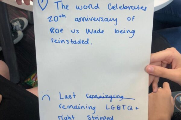 During the session, participants (aged 12-18) chose the global issue they were most interested in, explored what they already know about the issue and used futures thinking techniques to give a future vision for Wales and the world related to their chosen issue.