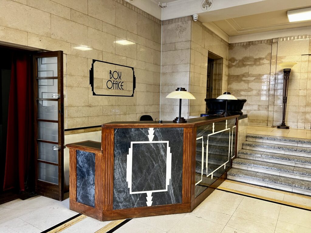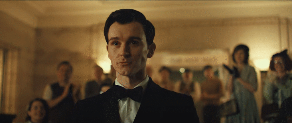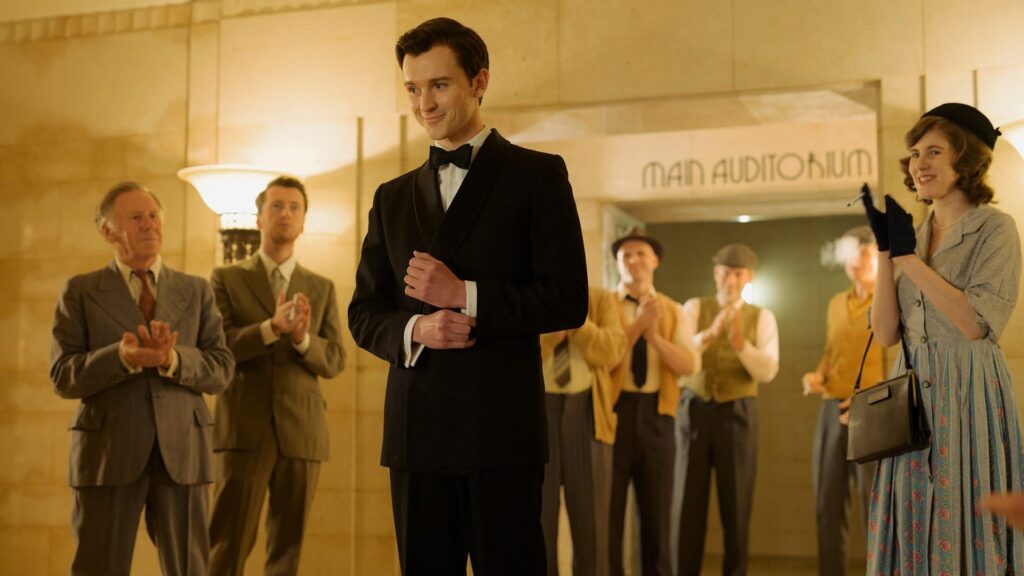 Harry Lawtey as the young Richard Burton, with the vestibule of Wales’ Temple of Peacerecreating the art deco heyday of Stratford’s Royal Shakespeare Theatre. Image – Icon Film Distribution
