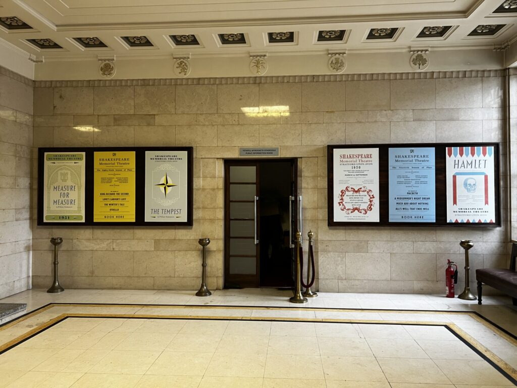 WCIA’s entrance vestibule dressed with 1950s posters for Shakespeare productions