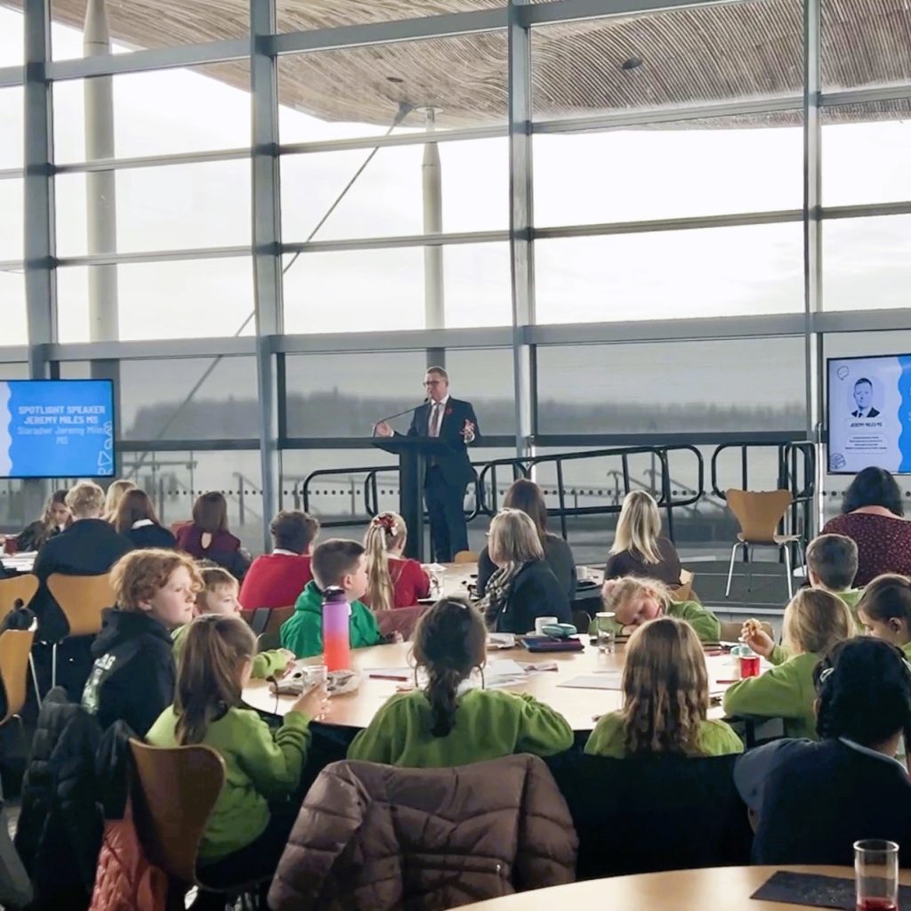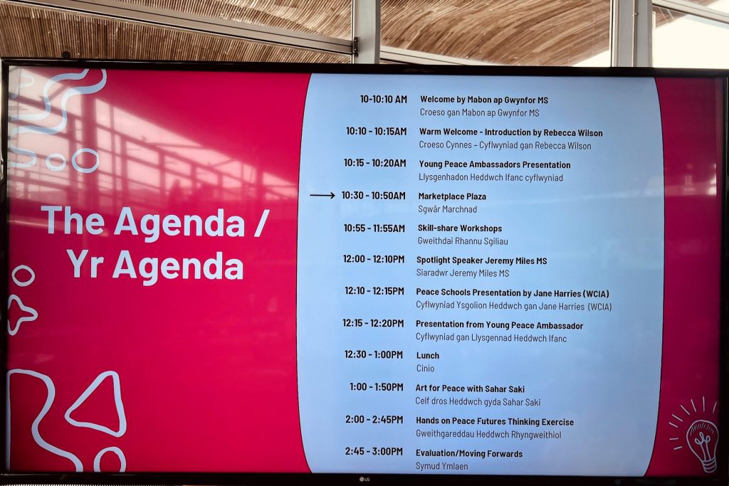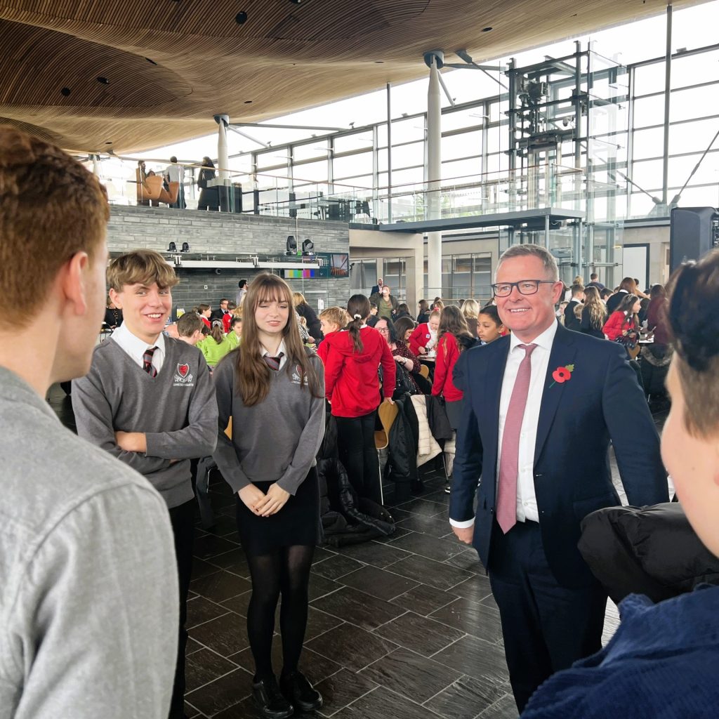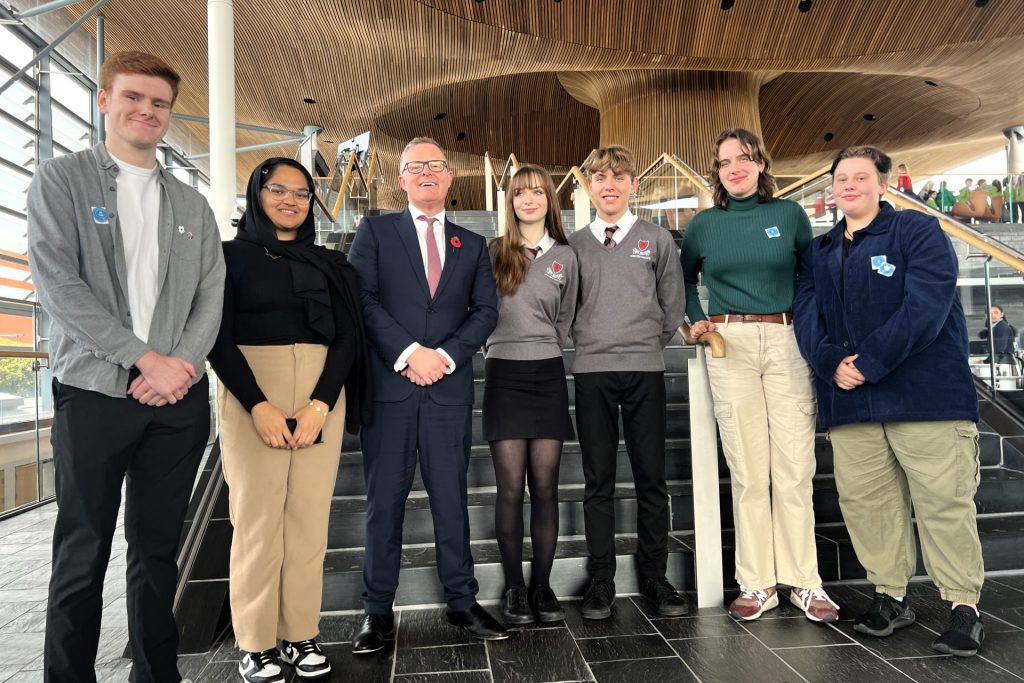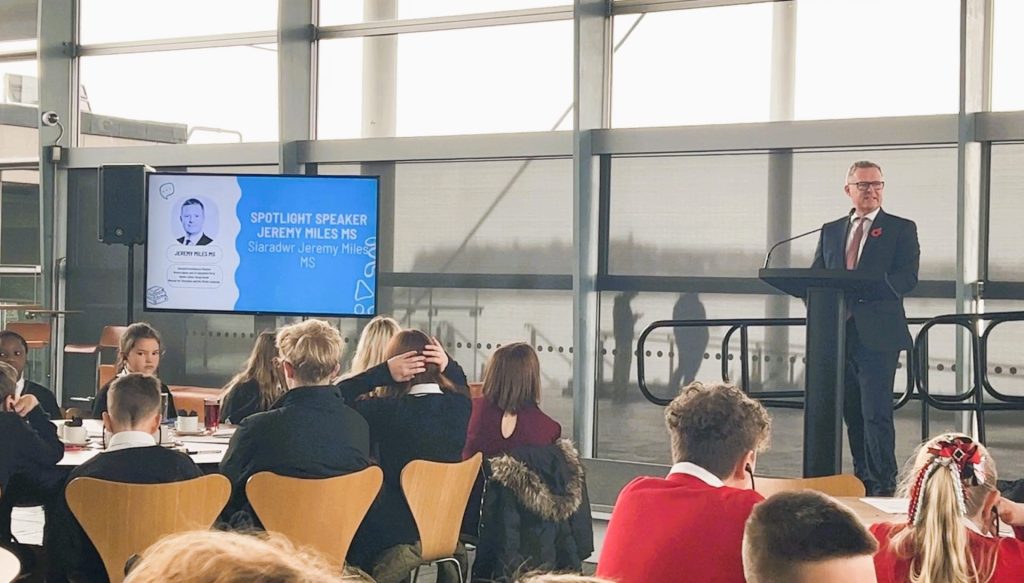 Senedd Members (MS’) themselves contributed to the event over the day, opened by Cross Party Group for Peace Chair Mabon ap Gwynfor, and with Education Minister Jeremy Miles giving the keynote address over lunch – also taking the time to chat to young peace ambassadors about their work, and what they would like to see from Welsh Government.