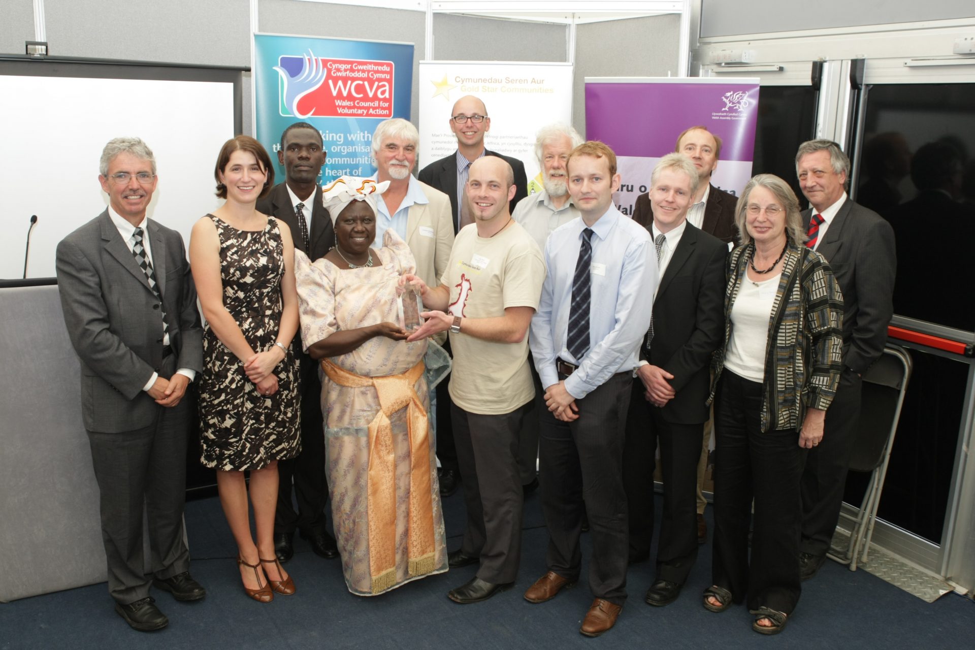Wales Africa Community Links display their ‘town twinning’ signs at the Senedd’s 2013 UN Gold Star Awards