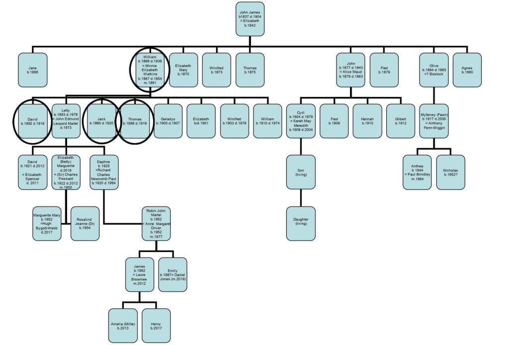 Before you explore the intricacies of David, Jack and Tom’s letters, you may wish to get a better sense of the timeline of events which this collection follows. If so, please click on the image below, to take you to The Minnie James Collections timeline, which charts the key dates in the James family’s WW1 story.