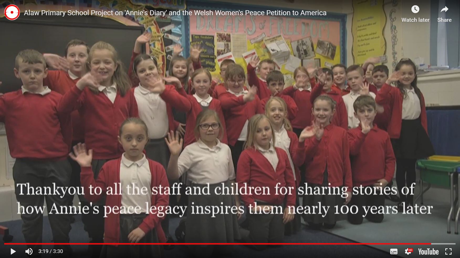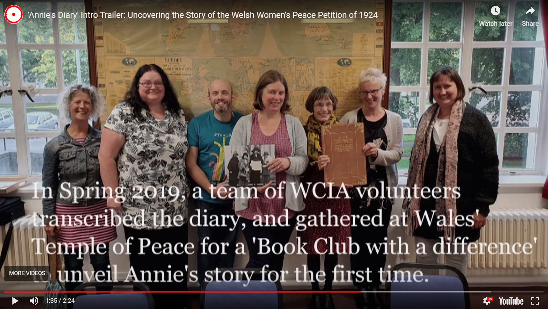 Initially digitised and transcribed by a team of volunteers in June 2019 – captured on the video above by Tracy Pallant and Amy Packham – Annie’s Diary continues to be an invaluable source for historians and individuals exploring the story of the Welsh Women’s Peace Petition, as well as an inspiring educational resource. Alaw Primary School in Rhondda Cynon Taff have used Annie’s Diary as the basis of a cross-curricular learning project, for which they received the Young Peacemakers Award at the 2023 Llangollen International Eisteddfod; and in March 2024, this has been developed into a Learning Pack for Schools published by WCIA alongside Academi Heddwch and Hwb.