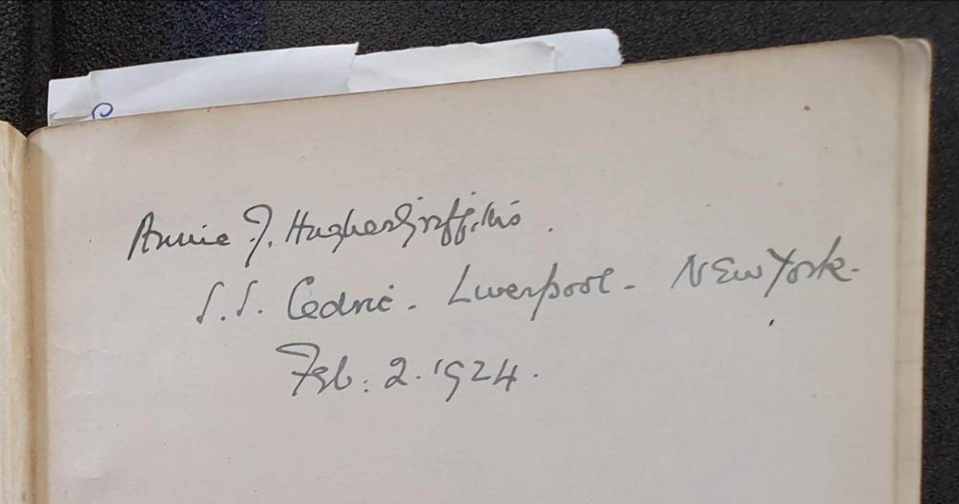 - 22-28 March 1924: Transatlantic voyage on White Star Line’s RMS Olympic (sister ship to Titanic) from New York to Liverpool.