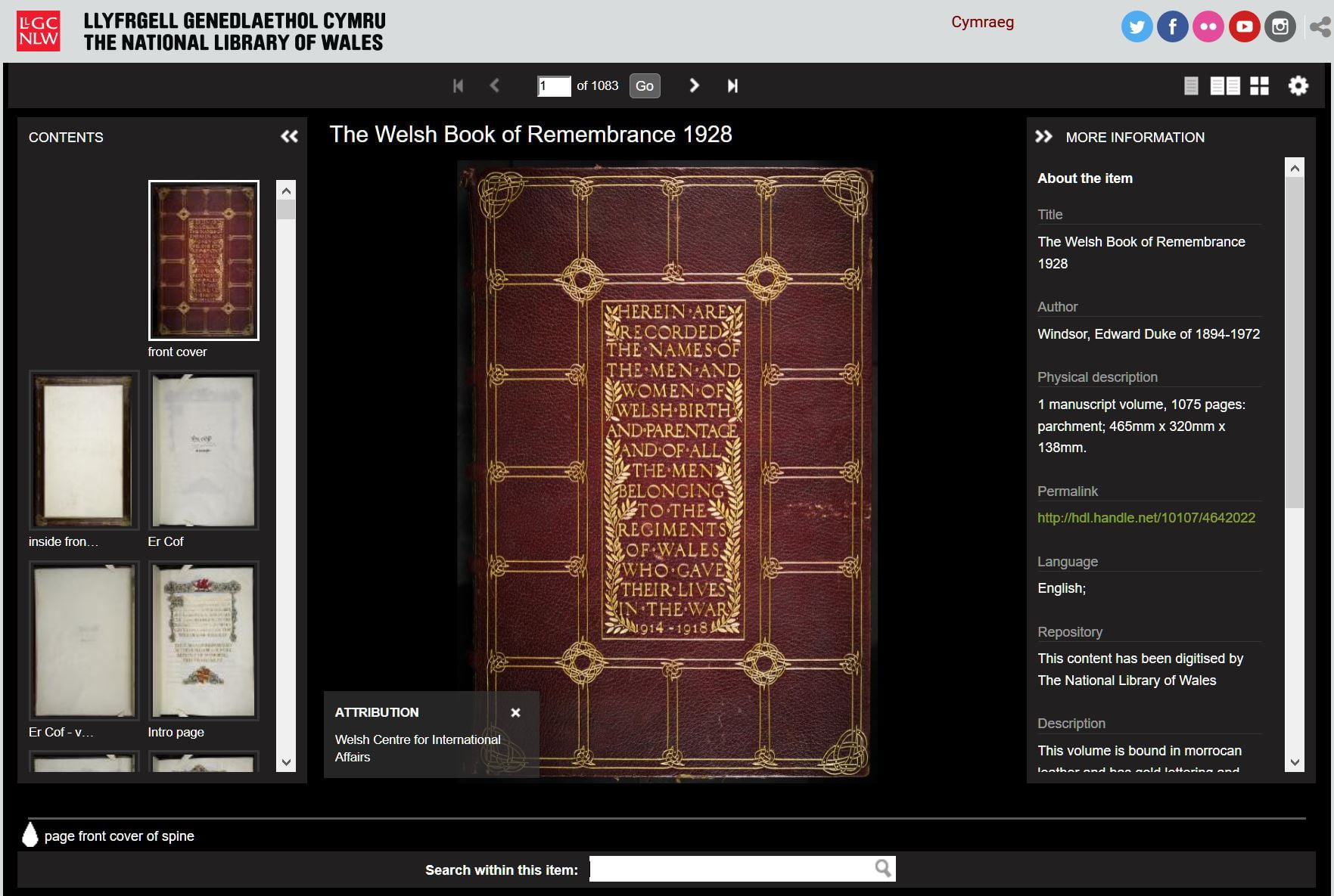 Over 35,000 Welsh men and women lost their lives in the First World War. Wales’ Temple of Peace was built as Wales’ national memorial to commemorate the loss of a generation in the Great War, and to house the WW1 Book of Remembrance – the rollcall of names. Over the WW100 Centenary period 2014-2018, the Book was digitised and ‘soldiers stories’ gathered as part of WCIA’s Wales for Peace project – which went on to explore how the horrors of war led a generation in Wales to campaign for peace and work for more positive international relations.