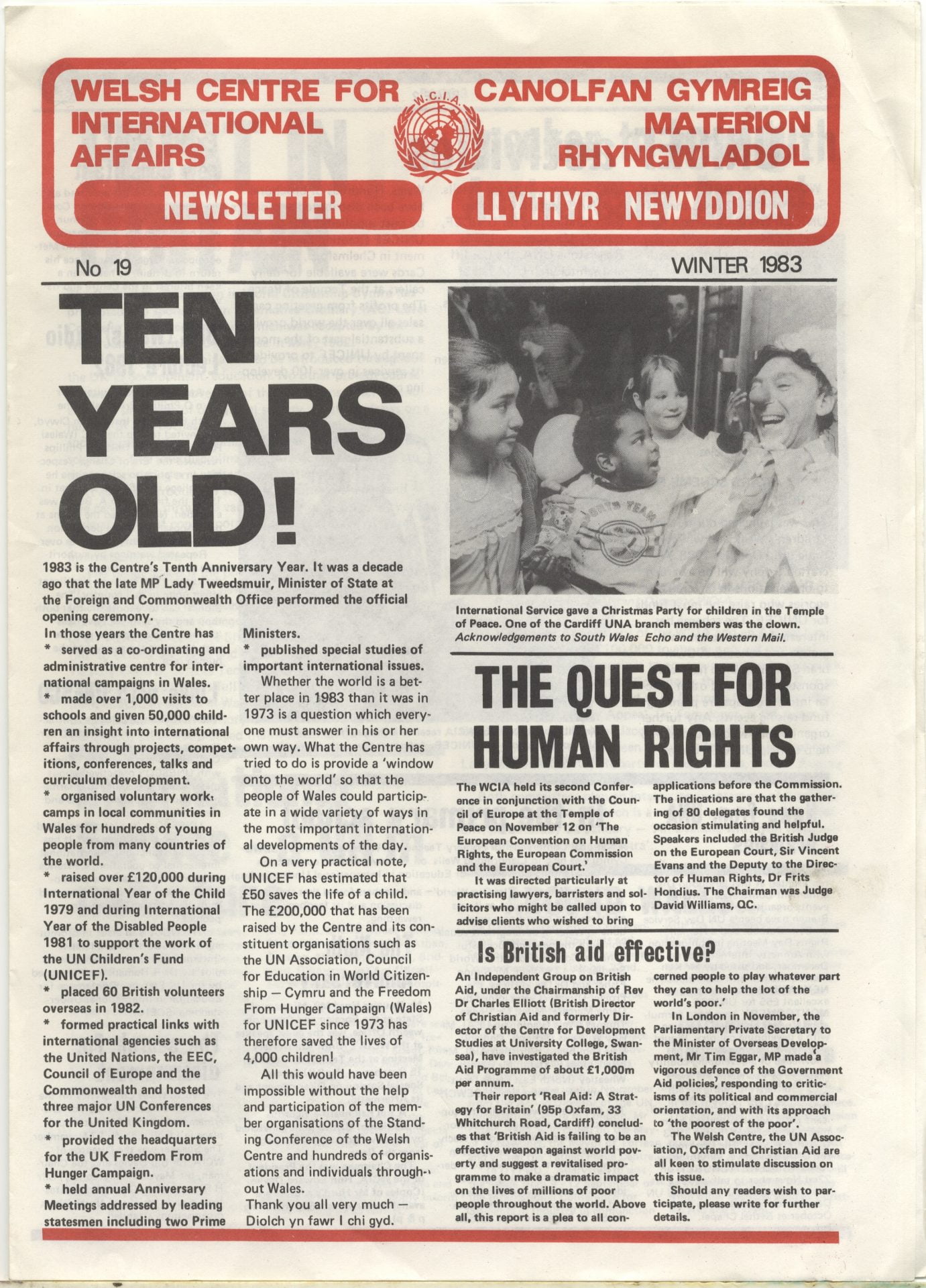 WCIA was founded in 1973 out of work by Bill Davies, WCIA’s first Director (from 1973 to 1996). It emerged from a period over the late 1960s, when Welsh civil society movements and political figures had been expressing open frustration at increasingly London-centric machinery of Whitehall and Westminster, ‘carving Wales out of the picture’. This was reflected in a resurgence and confidence in the Welsh independence movement, but also in a widespread desire for Wales to have it own distinct voice on world affairs. A campaign was taken up by the Western Mail: